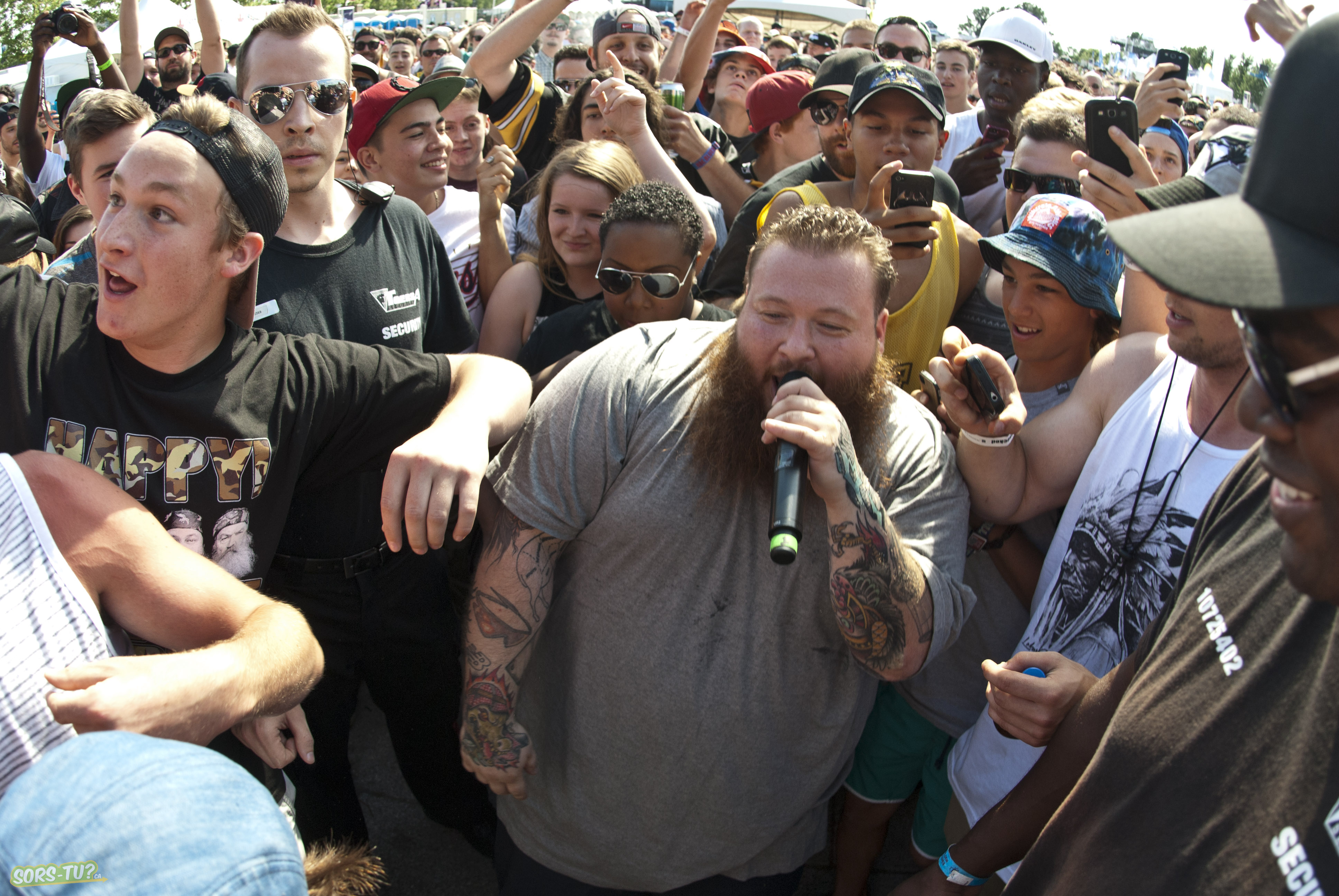 Sous le soleil cuisant, quelques centaines de curieux attendaient la performance d’Action Bronson sur la scène secondaire. Il s’est pointé au son de Silverado, avant de comprendre rapidement qu’il faudrait user d’audace et d’originalité pour marquer les esprits en ce samedi après-midi encore tranquille sur les Plaines Lebreton.