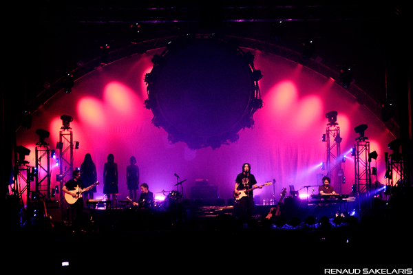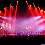 Tel un gigantesque poste de radio augmenté d’effets d’éclairage, Eclipse a fait revivre au public l’histoire de Pink Floyd de façon (quasi) chronologique. S’ouvrant sur une projection vidéo relatant les débuts du groupe original, diffusée sur un rideau blanc qui cachait la scène, le spectacle s’est poursuivi avec Astronomy Domine, les musiciens toujours derrière le rideau, créant ainsi un effet d’ombres chinoises très intéressant.