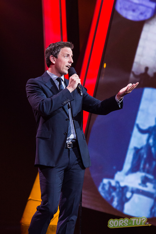 Le scénariste en chef de Saturday Night Live, Seth Meyers, était à la barre d’une sympathique soirée à la Salle Wilfrid-Pelletier, mercredi soir. Avec une panoplie de valeurs sûres au menu de son gala, Meyers a déridé la foule montréalaise de charmante façon.