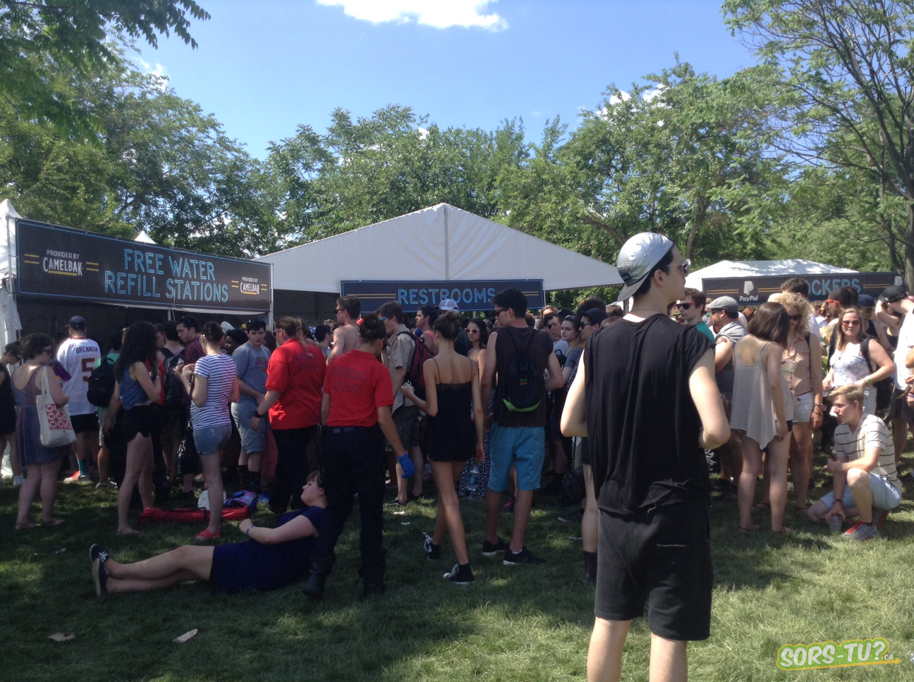 15 :30 – «Il fait chaud en connard», comme on dit, et la file pour le remplissage de bouteille d’eau devient de plus en plus ridicule. Aperçu du dixième de son ampleur.