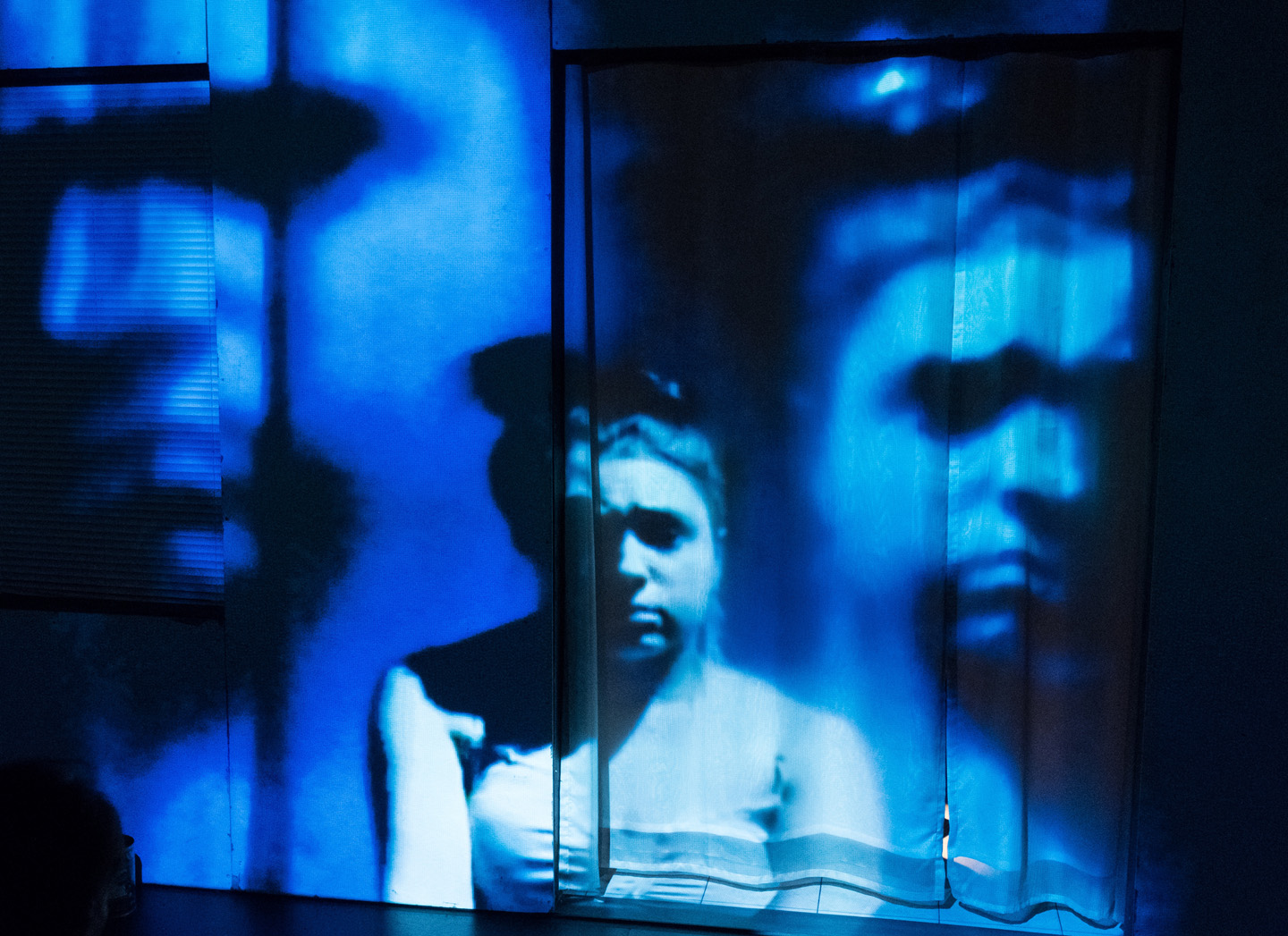 Puis, la fatalité se fait entendre. Marie est enceinte, et il n’y a pas de place pour un pauvre de plus sur cette Terre. Le texte est brutal, sans ménagements, comme ce « Pas venir au monde, c’est la meilleure affaire » lancé par Karl qui se sent à l’évidence « pas du bon bord de la vie ». Mais le travail de vidéaste de Marilyn Laflamme, avec des projections en gros plans sur ce cubicule transformé en écran, rend la suite (un avortement avec une fourchette), moins insupportable.