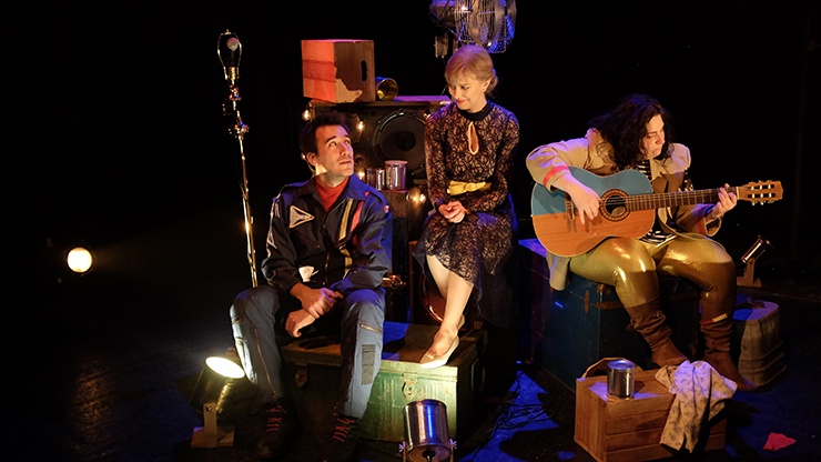 Mis en scène et adapté habilement par Nicolas Gendron, le spectacle s’articule autour de cinq comédiens dans un décor de bric à brac où se retrouvent pêle-mêle une vieille lampe, un coffre, une cuve, un escabeau, une brouette ou encore un drap blanc pendu à une corde à linge. La table est mise pour le numéro Sol au monde en ouverture, et chacun des comédiens ensuite y trouvera matière à délire.