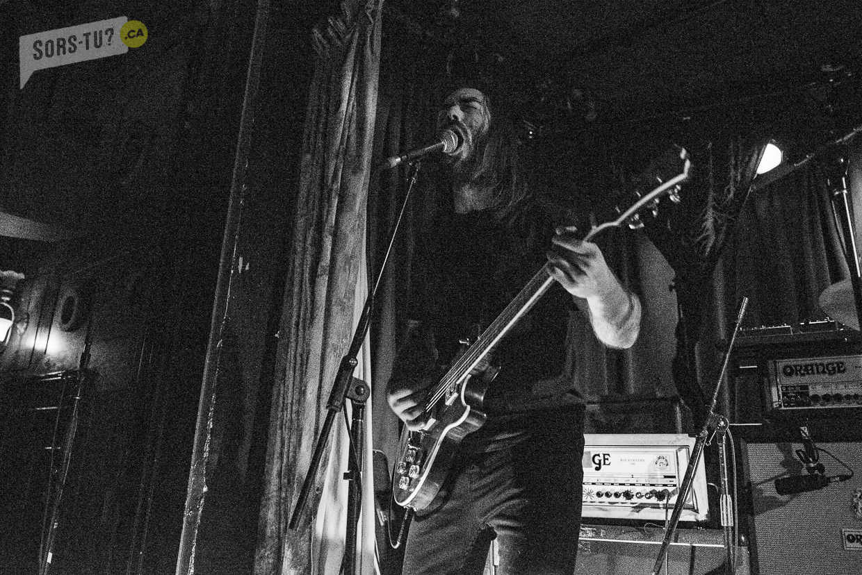 Leur hurleuse en robe à fleur est trop timide pour s’avancer sur la scène et reste cloîtrée d’un bord. Un peu dommage car le feeling est bien là (et sa voix très bonne dans le genre) et elle semble possédée par la musique. Il faudra attendre le dernier morceau pour la voir s’avancer un peu, ce qui fait tout de suite la différence niveau scénique.