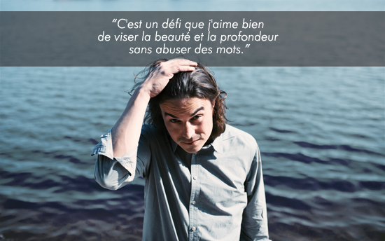 Et le voilà qui revient avec une quatrième parution en autant d’années, cette fois-ci piano-voix. »Ça a peut-être rapport avec le fait de vieillir, ou c’est peut-être la réponse à mon album plein de rancoeur que j’avais fait juste avant, avec Siinai. Une partie de moi voulait revenir à quelque chose de plus optimiste et émouvant. Mon écriture s’est beaucoup simplifiée. C’est inconscient, mais en même temps, c’est un défi que j’aime bien de viser la beauté et la profondeur sans abuser des mots. »